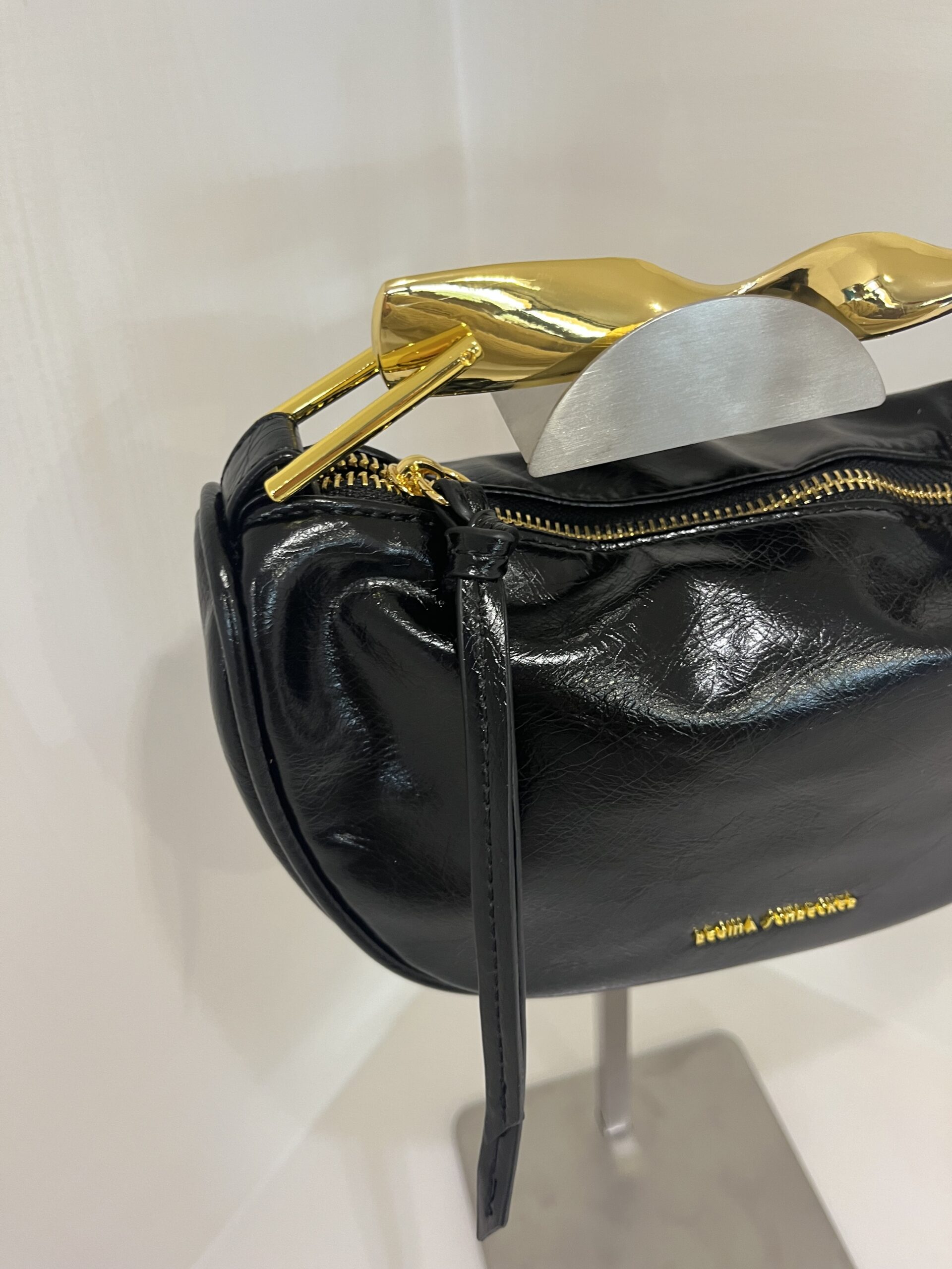 La borsa in ecopelle “Charlotte” è un accessorio elegante dal carattere deciso, grazie al manico in ferro che dona un tocco moderno e sofisticato. Il colore nero la rende intramontabile e perfetta per ogni outfit. Compatta nelle dimensioni, è dotata di tracolla per unire stile e praticità.