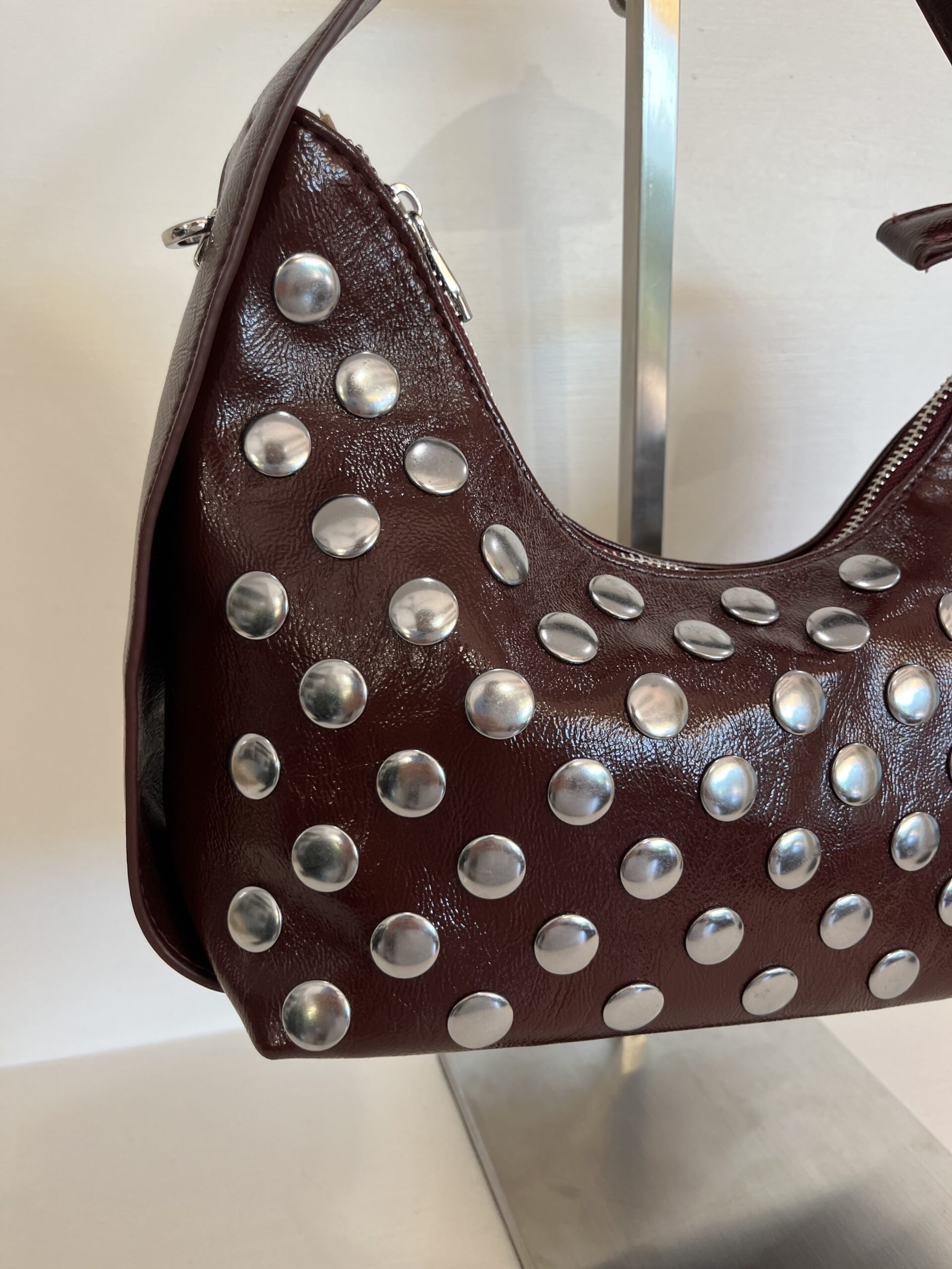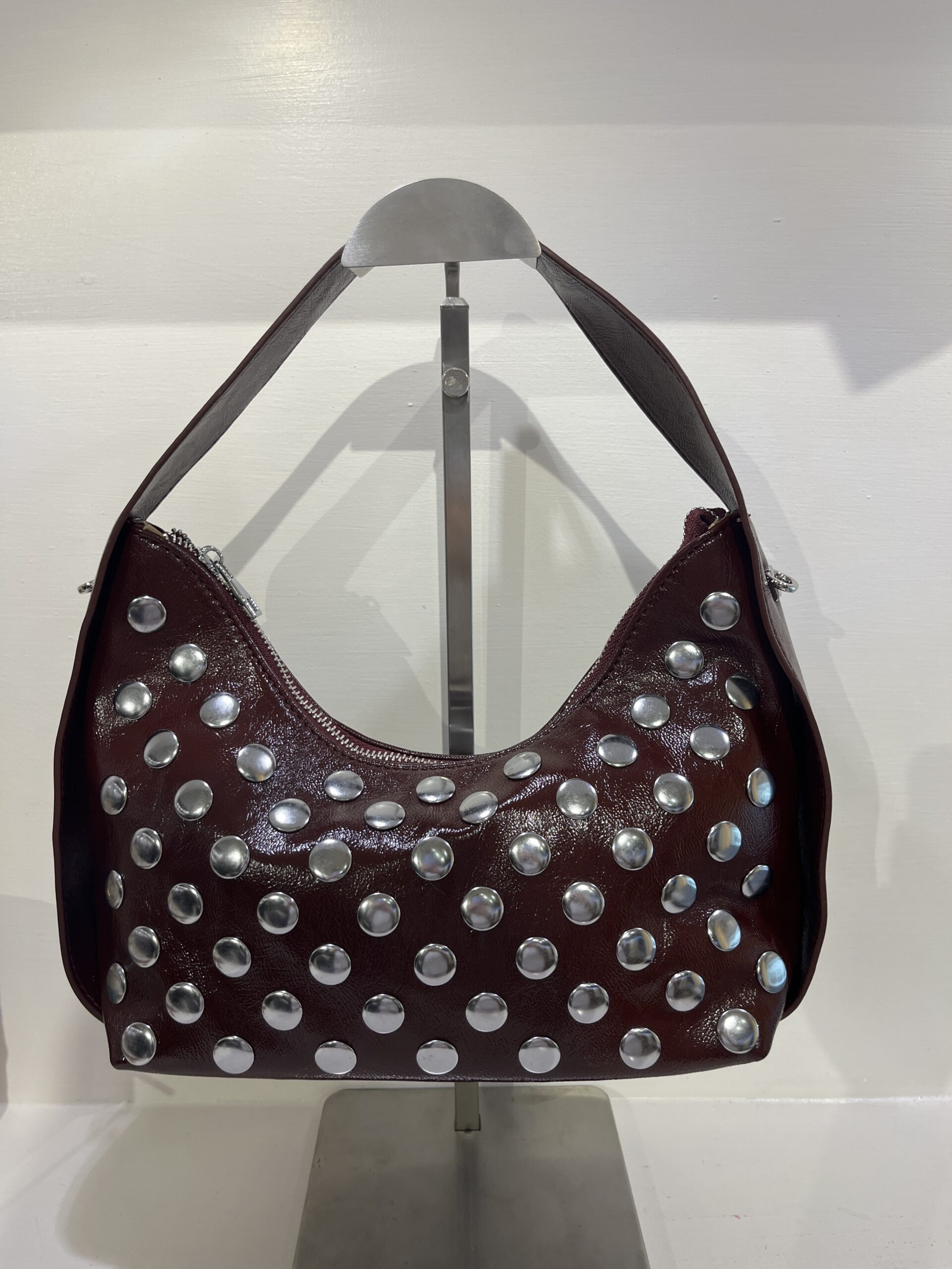 Borsa ecopelle con borchie “EMI” bordeaux