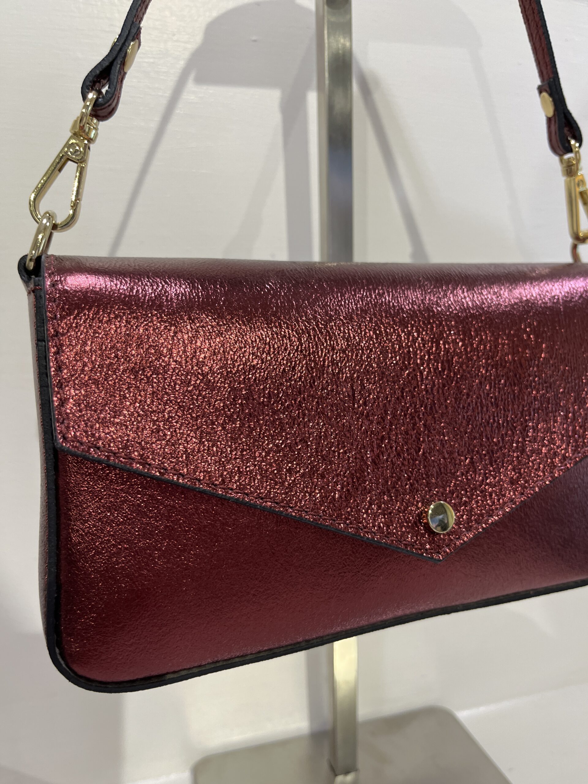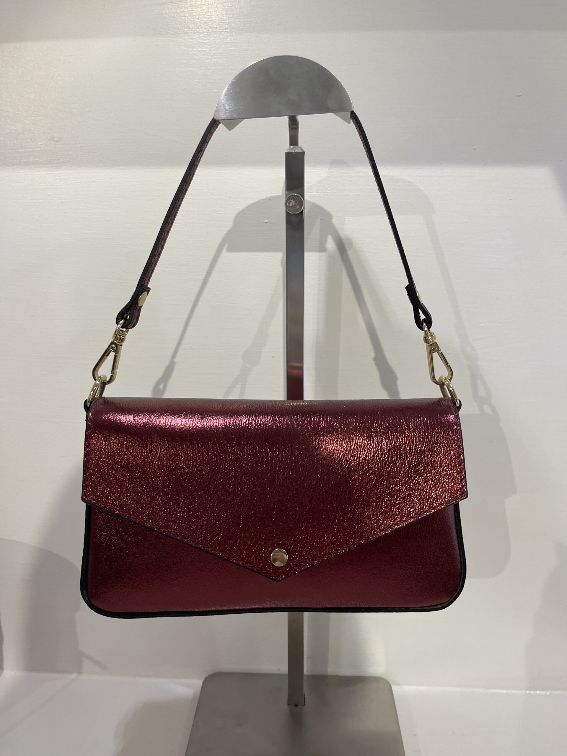 CARLY è la borsa in vera pelle laminata rosso brillante, pensata per chi ama farsi notare.