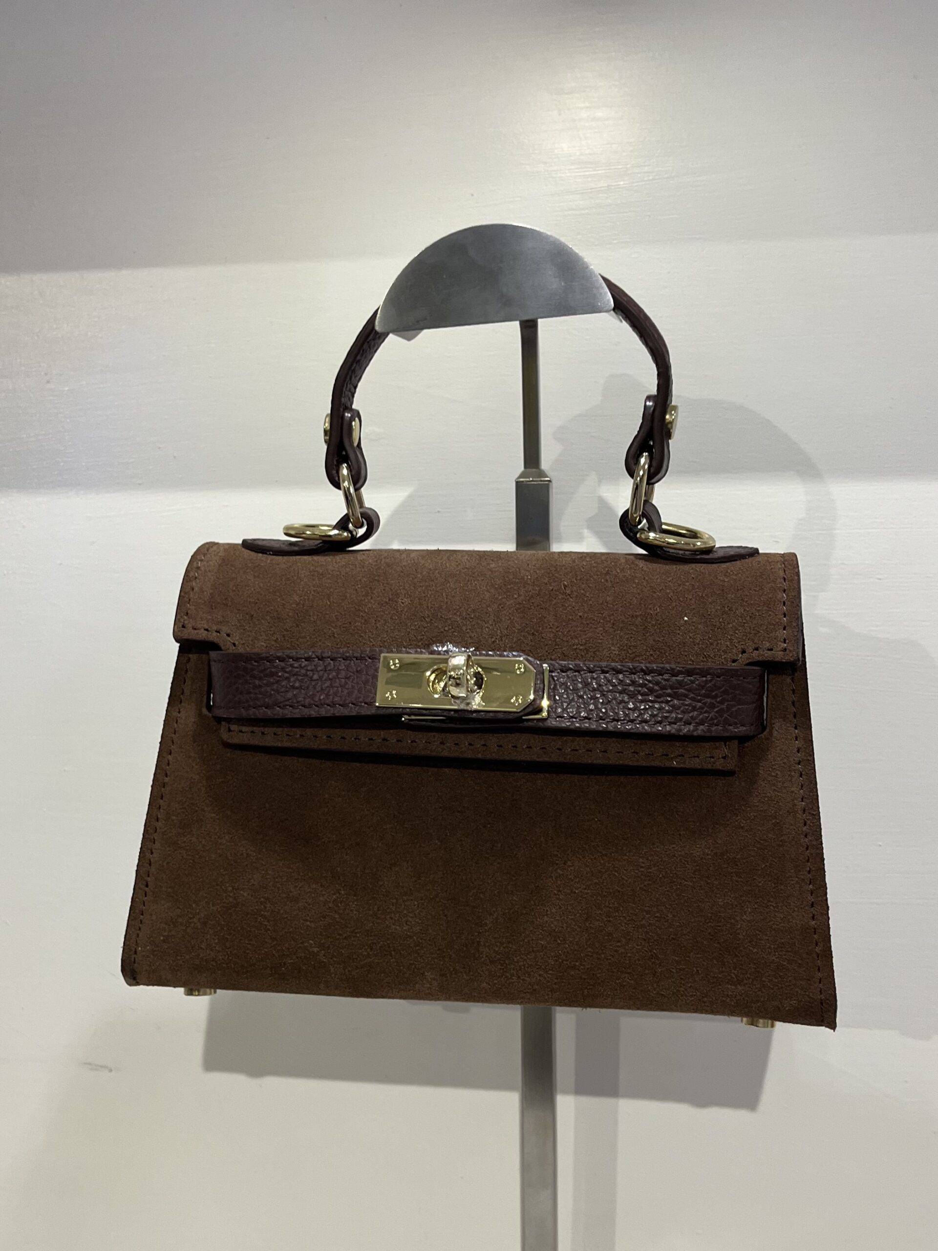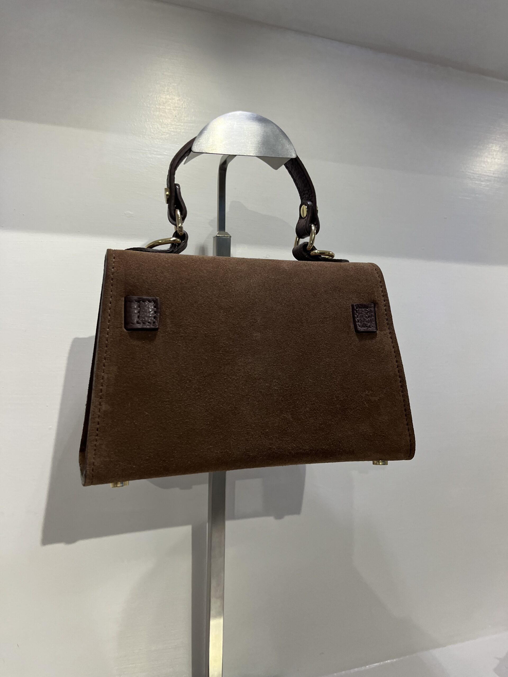 Borsa “Kendal” in pelle scamosciata, sofisticata e dal look raffinato.