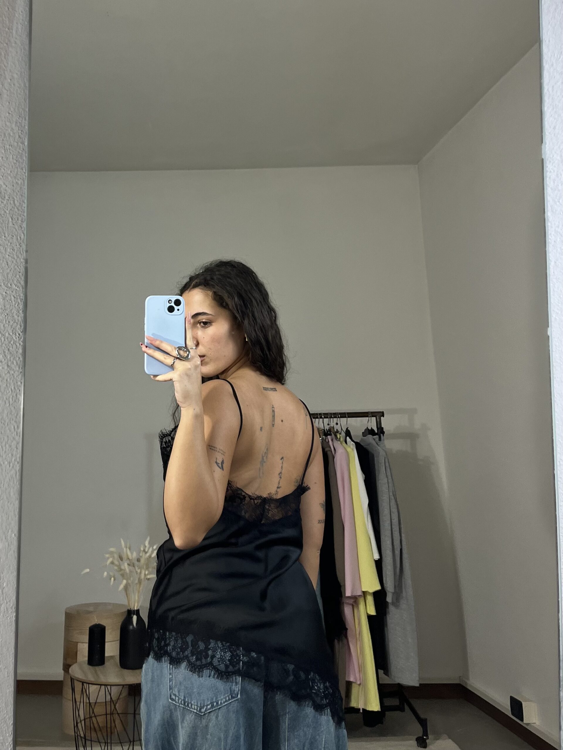 Canotta asimmetrica in satin dalla linea fluida, impreziosita da delicati inserti in pizzo. Perfetta per look chic da sera o abbinamenti raffinati da giorno.
