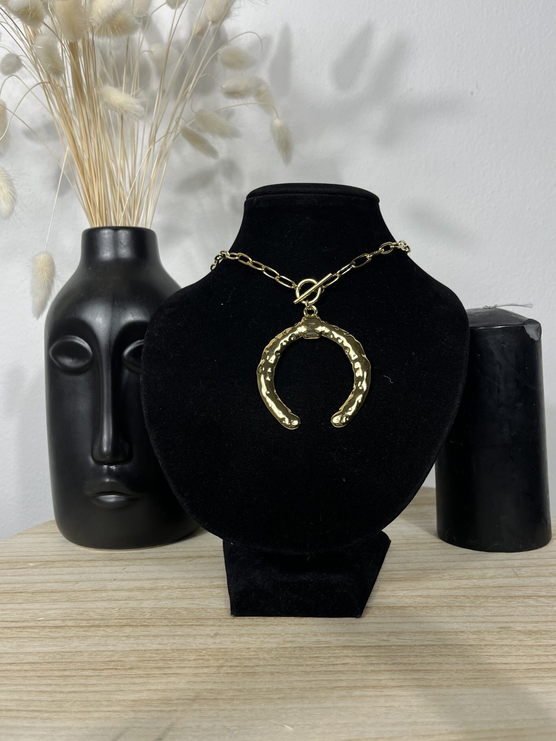 Collana con ferro di cavallo, simbolo di fortuna e stile.