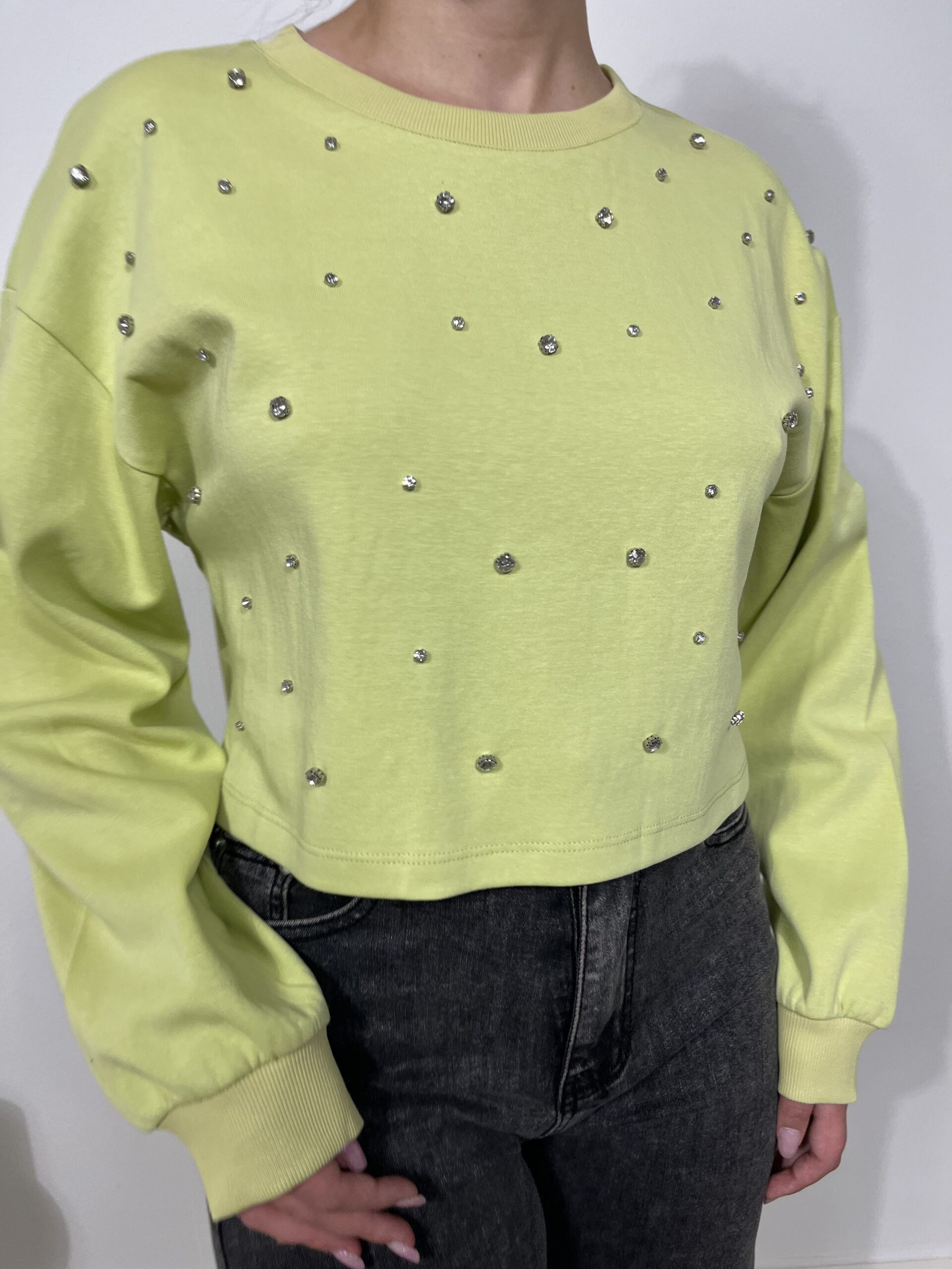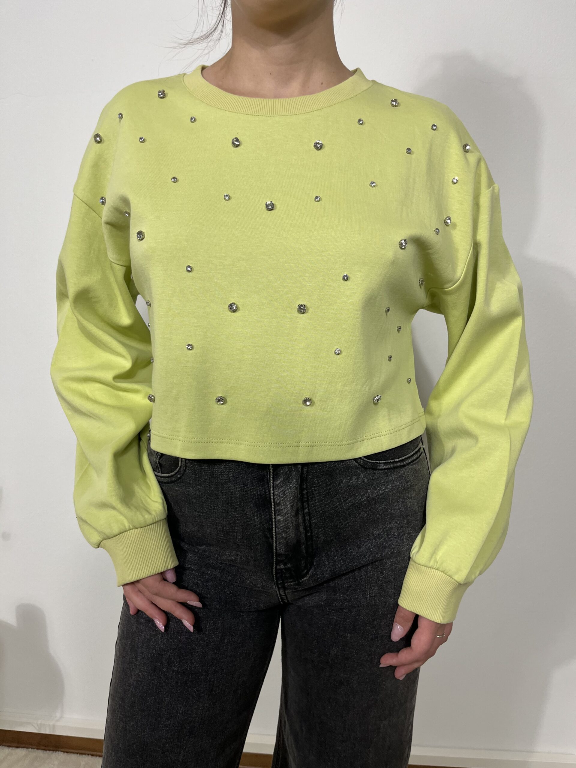 Felpa crop con brillantini, casual ma con un tocco glam.