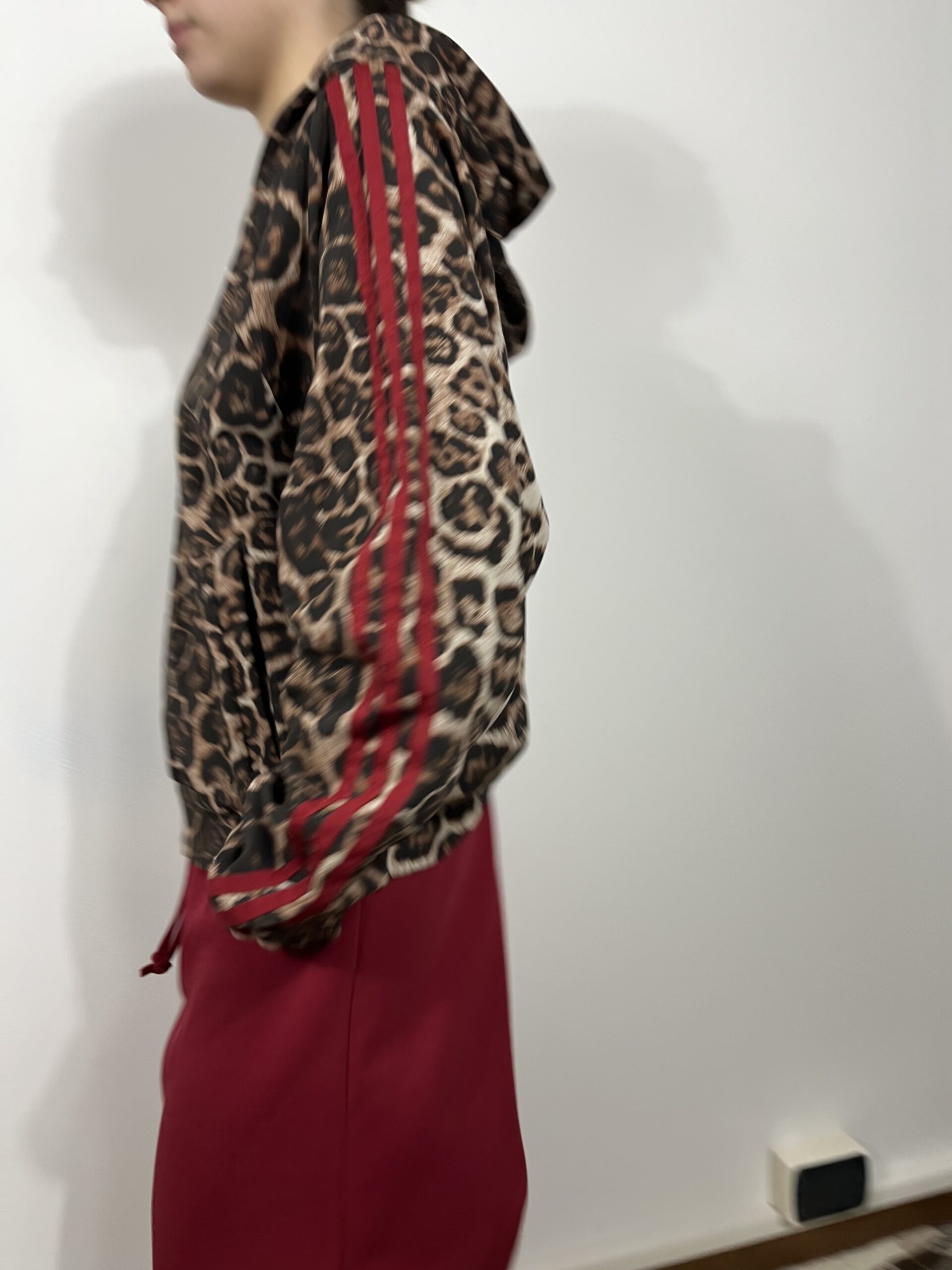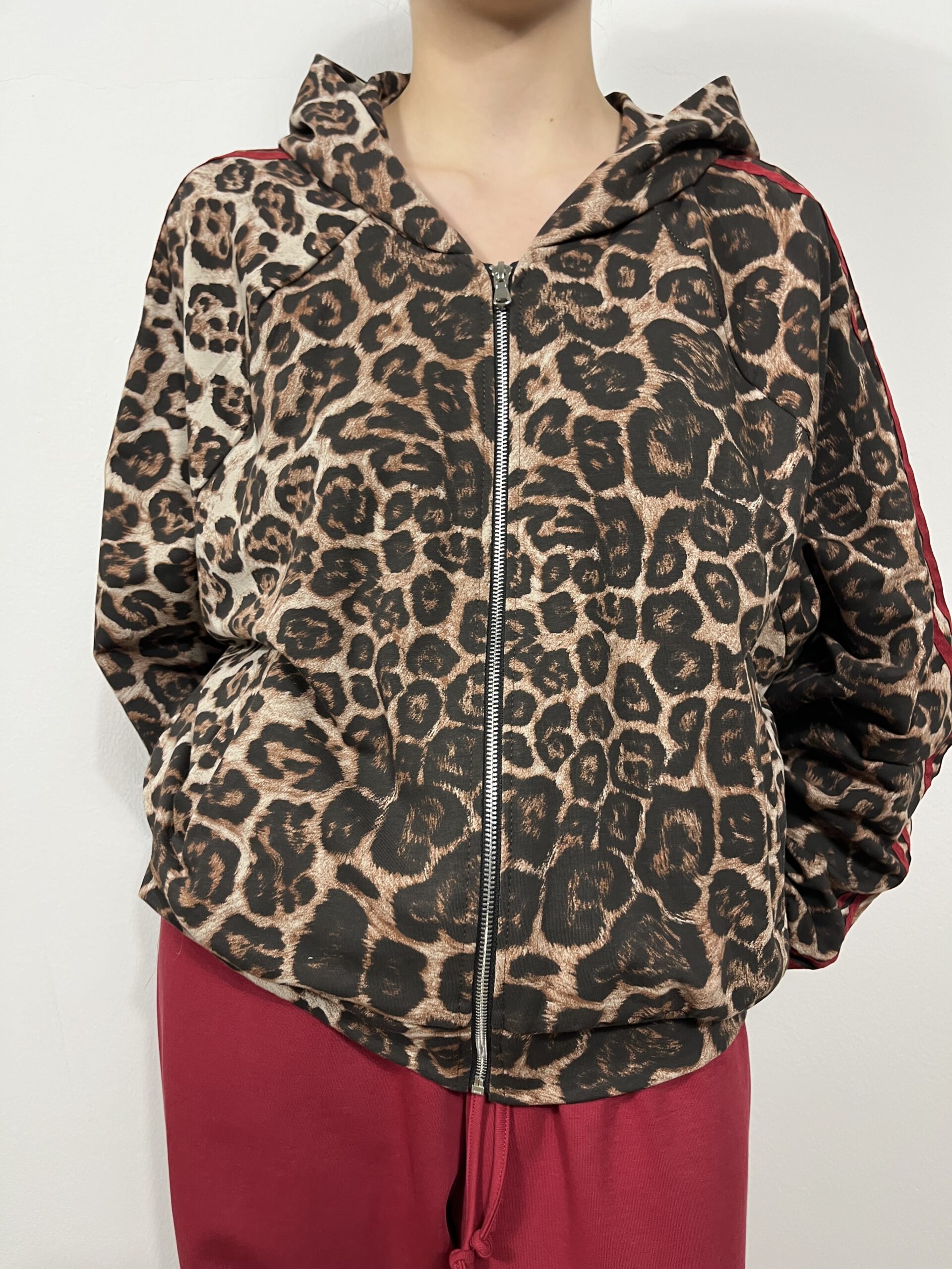 Felpa dallo stile deciso con stampa animalier e bande laterali a contrasto.