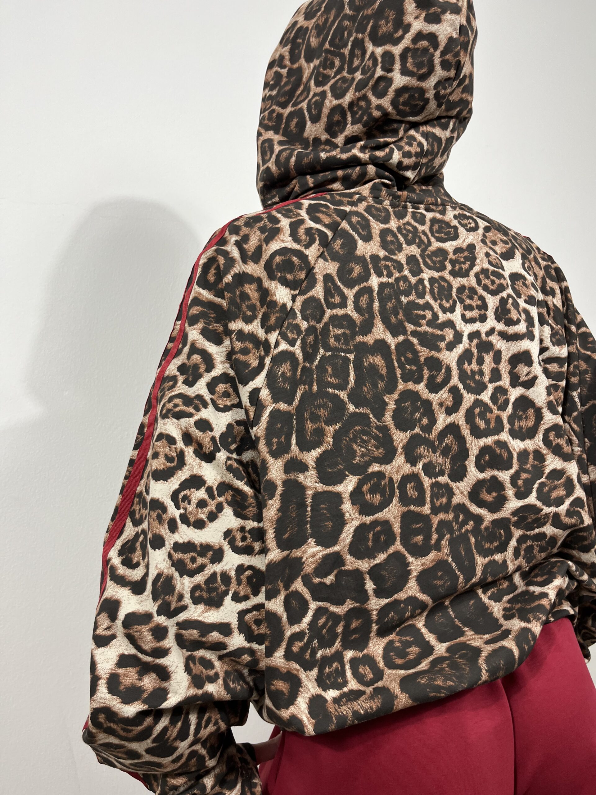 Felpa leopardata con fasce, per uno stile strong e casual.