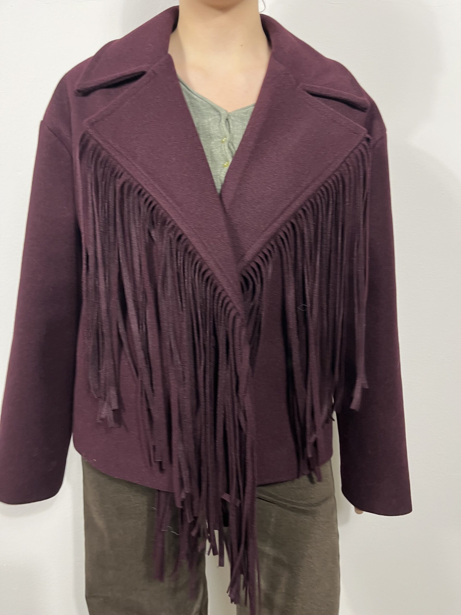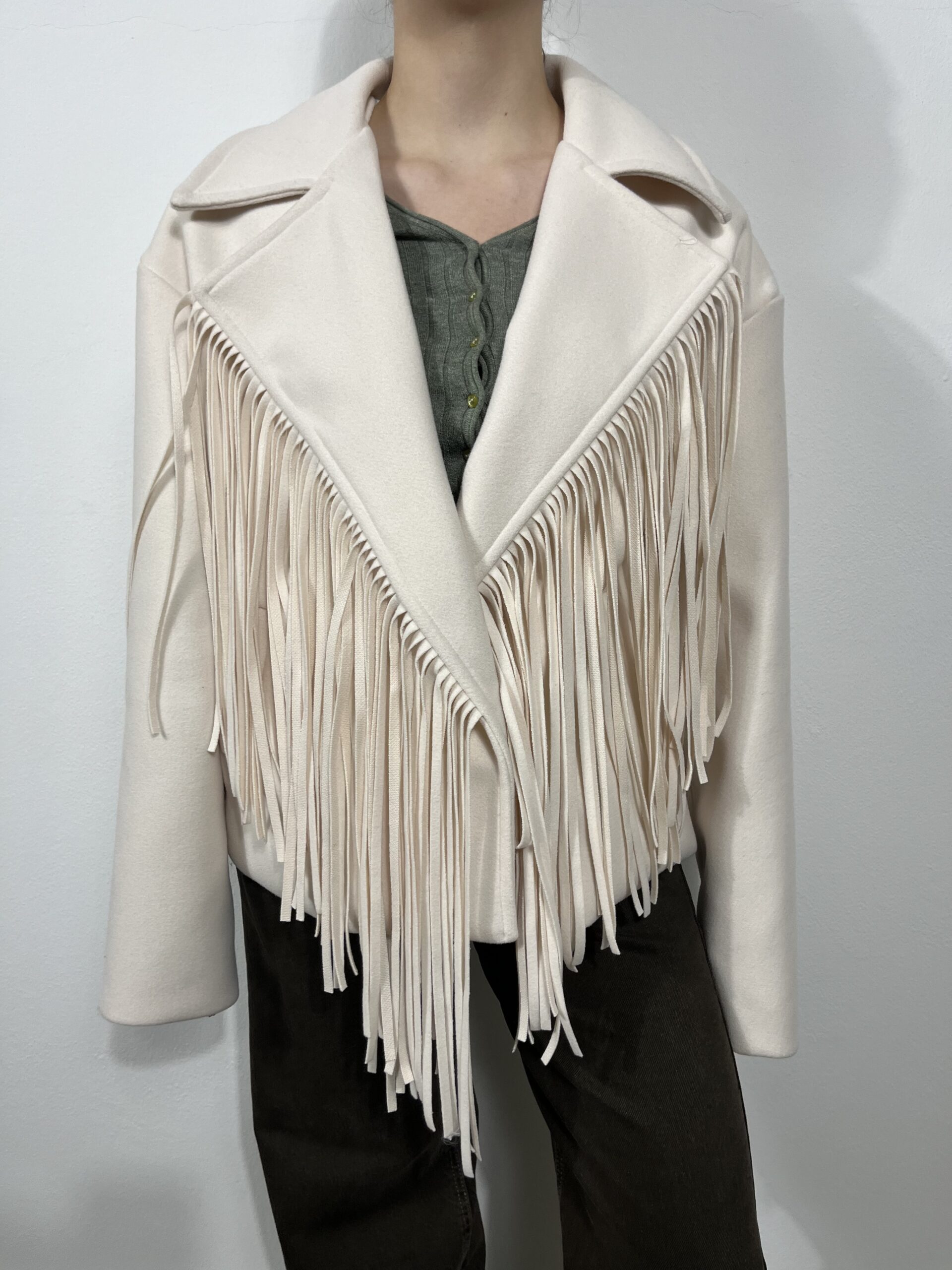 Dal carattere boho e grintoso, la giacca con frange aggiunge movimento e personalità al look. Realizzata in tessuto morbido, è perfetta per chi ama un tocco originale senza rinunciare all’eleganza.