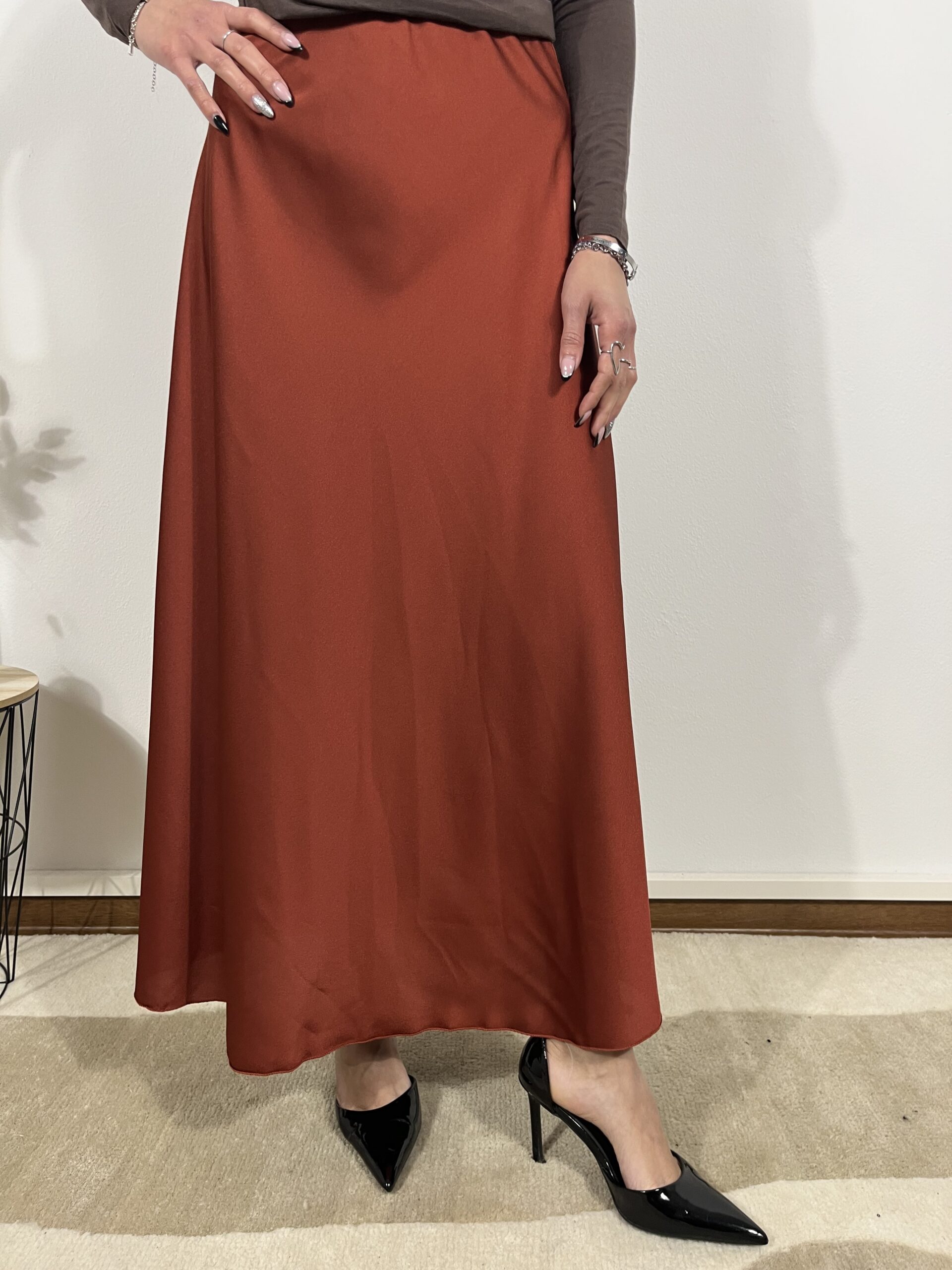 Gonna lunga in satin dallo stile fluido e sofisticato.
