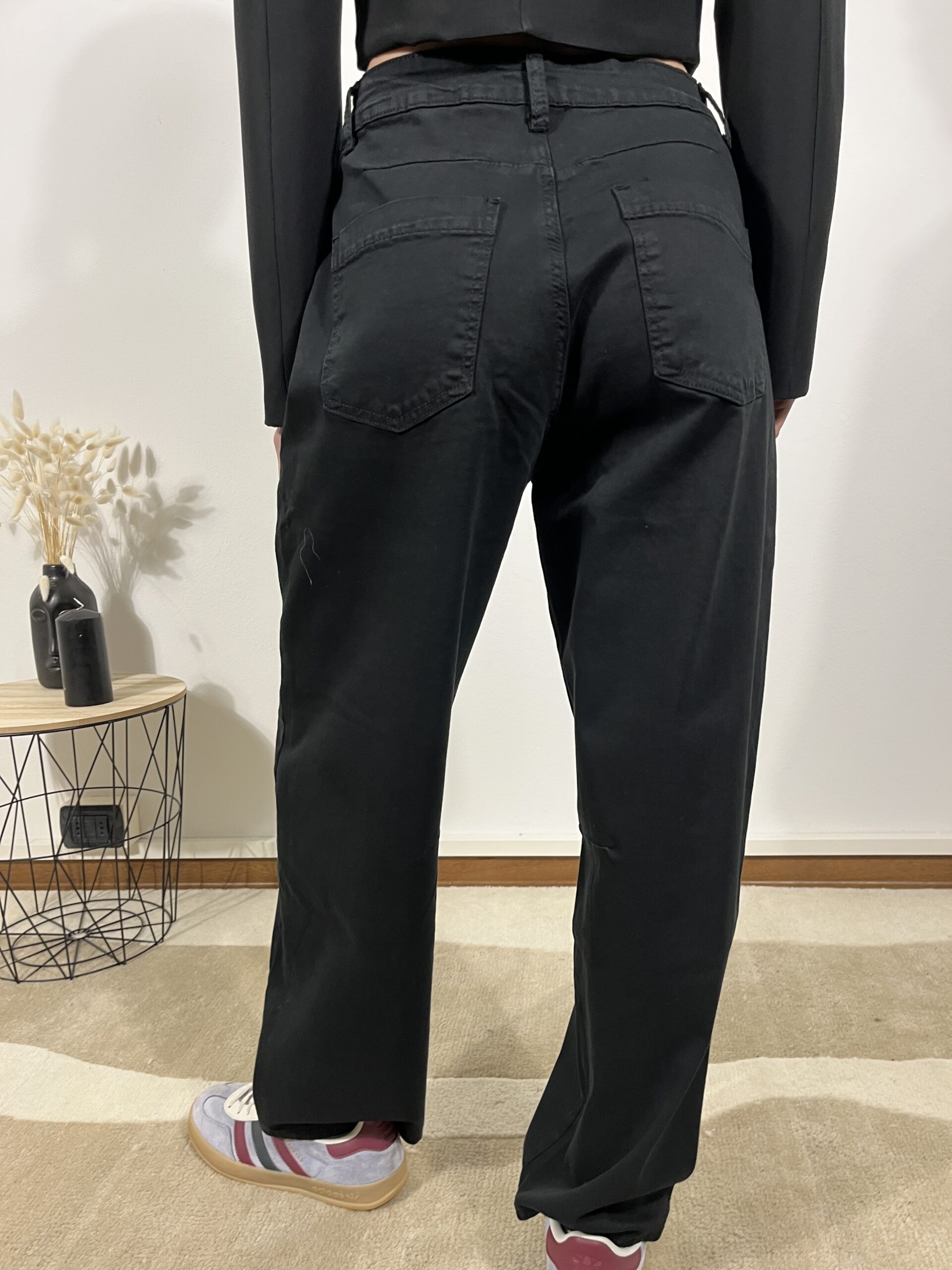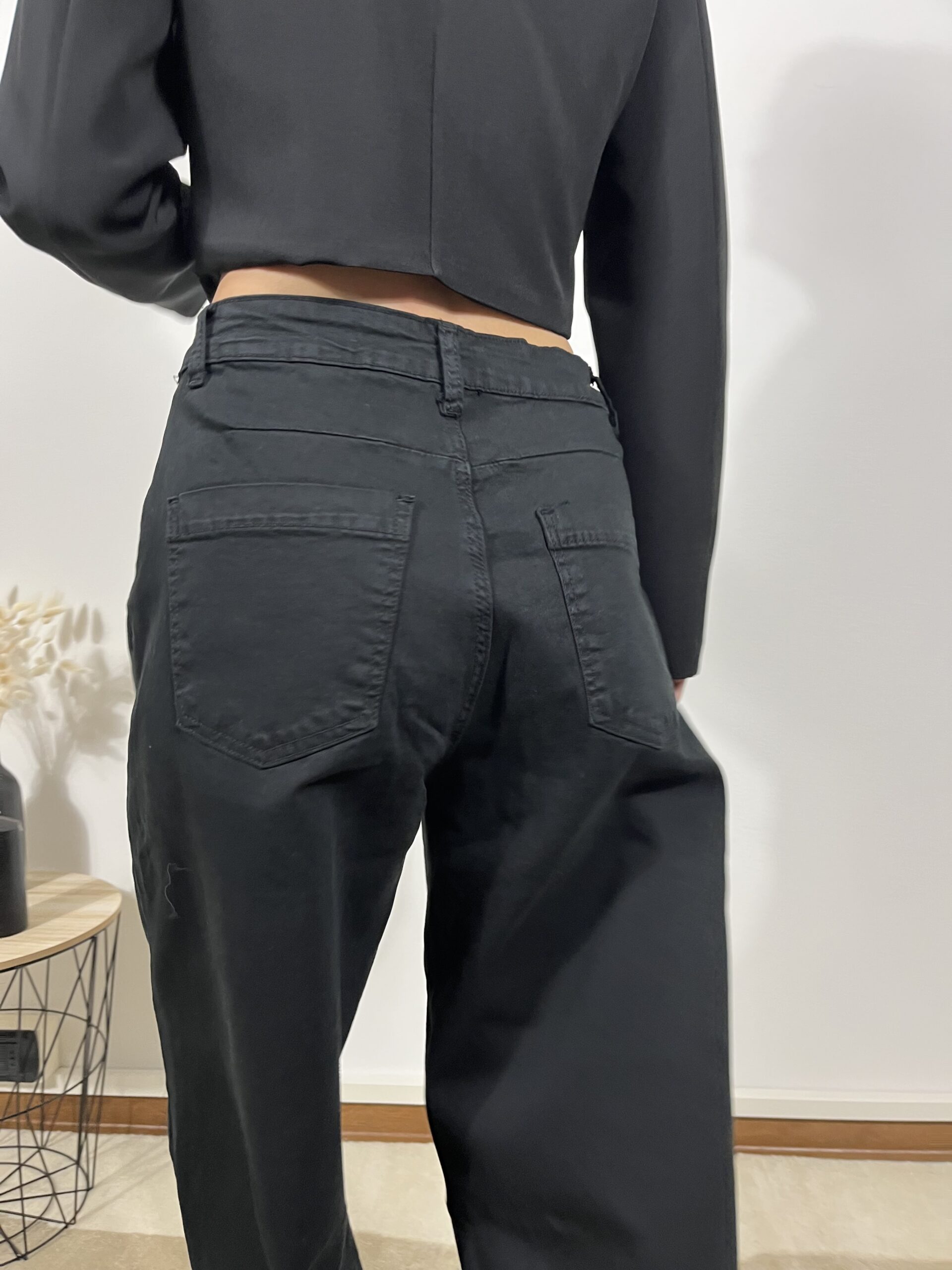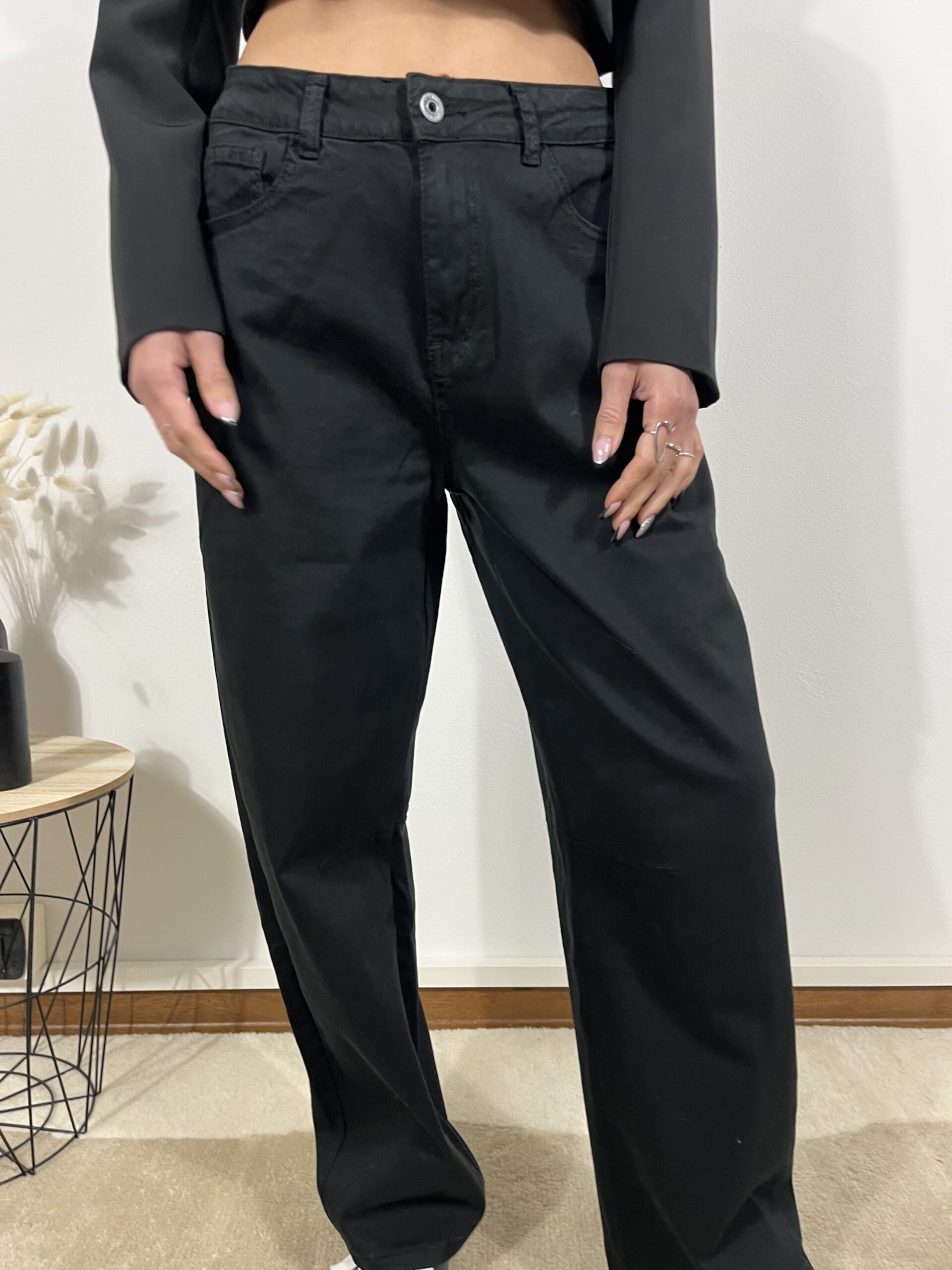 Dal fascino essenziale, i jeans ballon neri uniscono comfort e stile. Il tessuto leggero e la linea ampia donano libertà di movimento, ideali per outfit casual ma sempre curati.