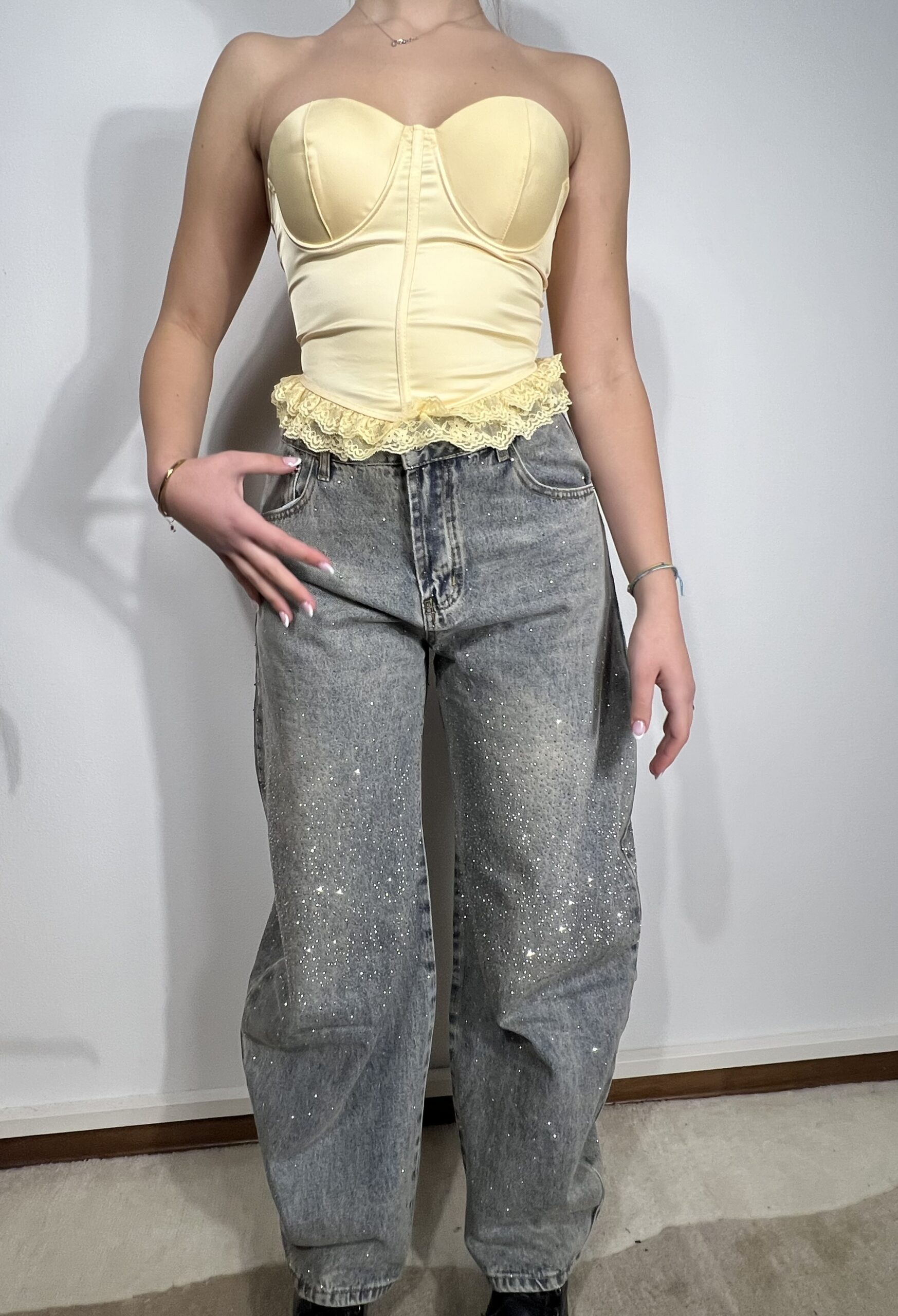 Jeans baloon con brillantini, comodi e super trendy.
