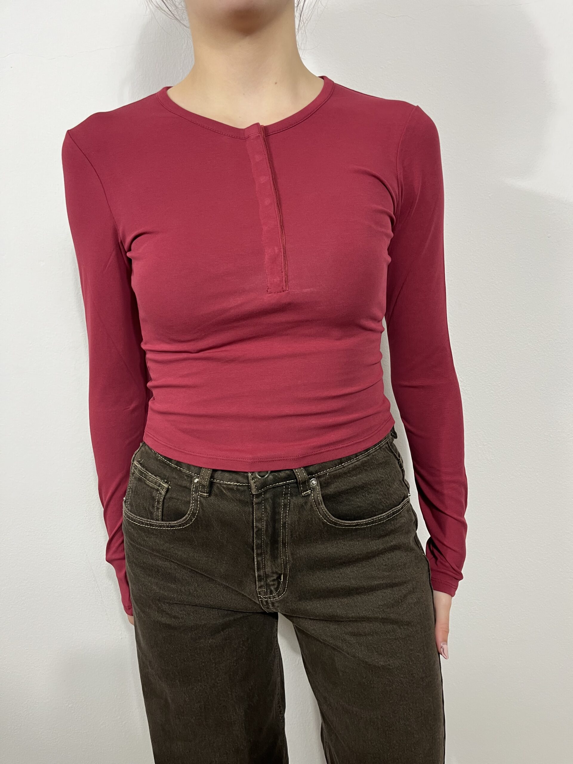 Maglietta con bottoncini bordeaux