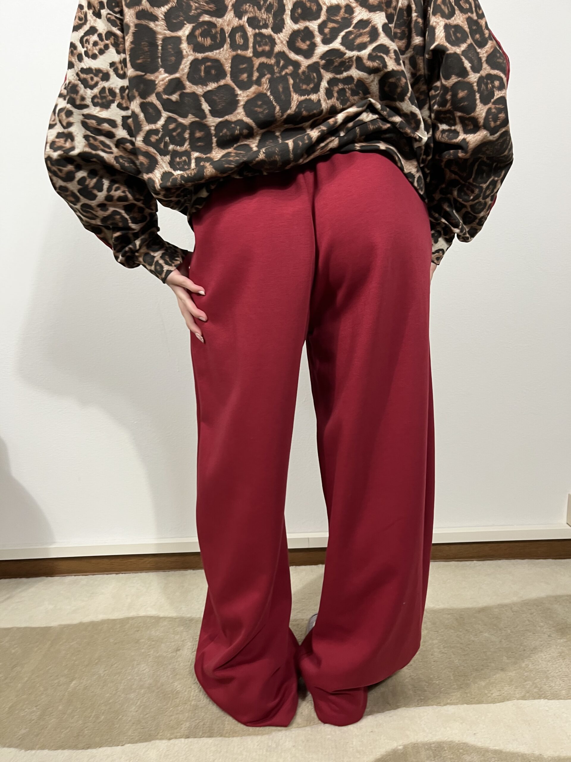 Pantalone tuta balloon bordeaux, per un look casual ma stiloso, caratterizzato da comfort e originalità.