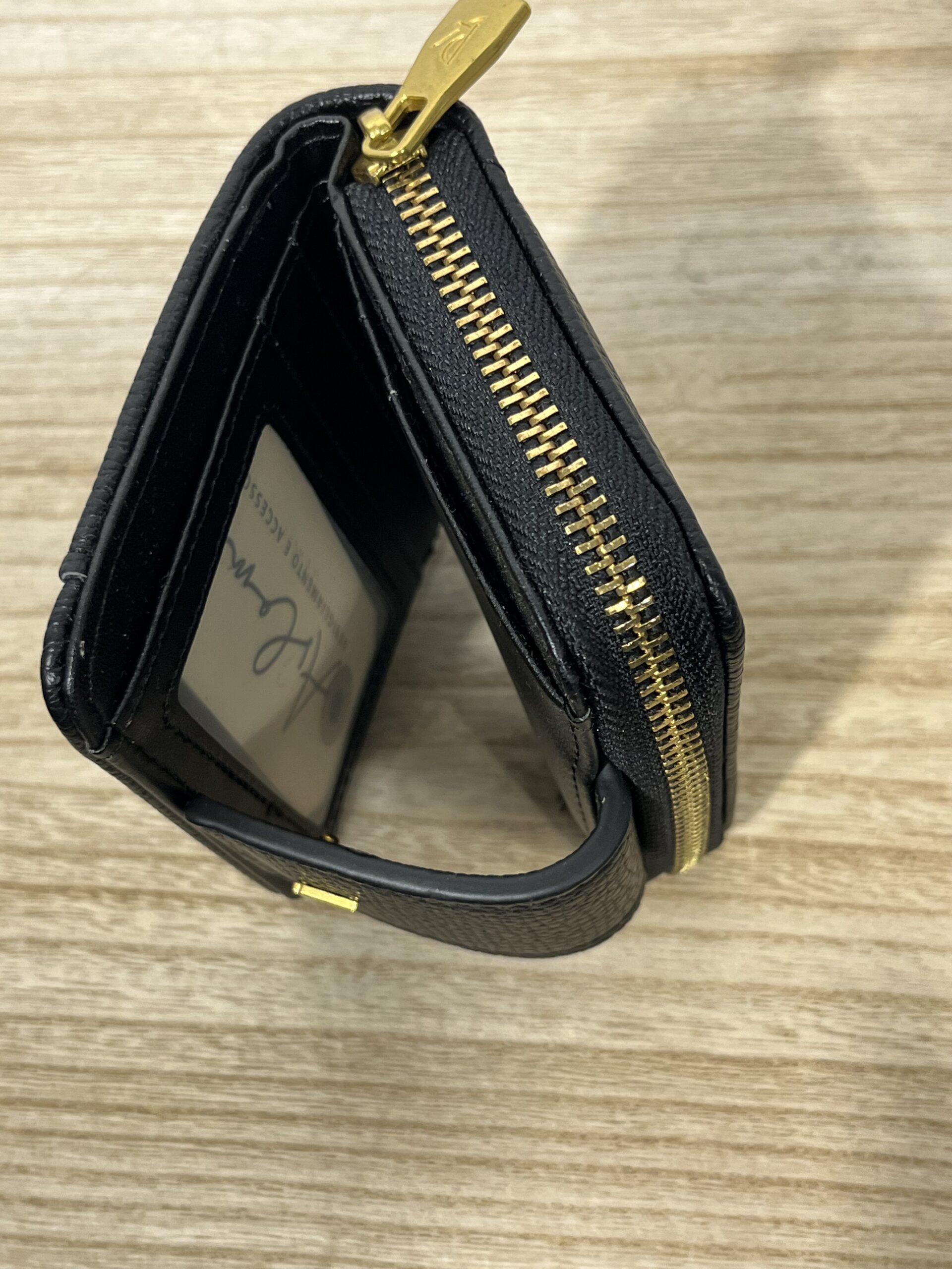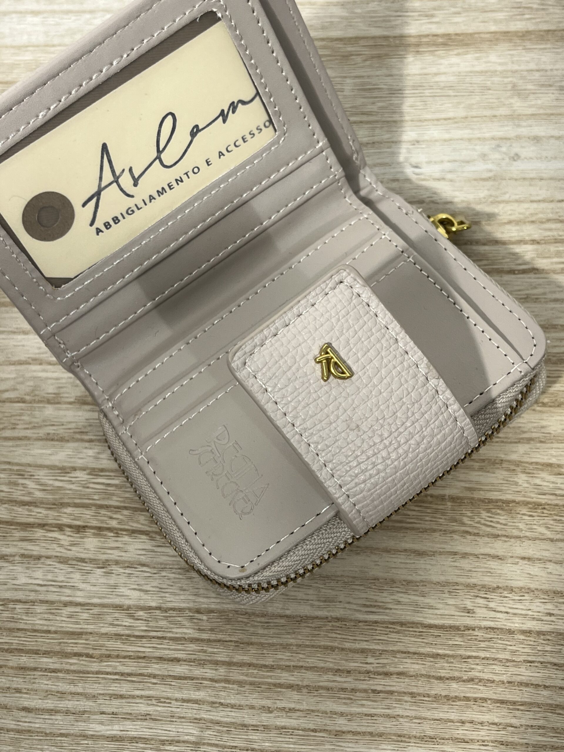 Portafoglio sottile e raffinato con dettagli femminili.